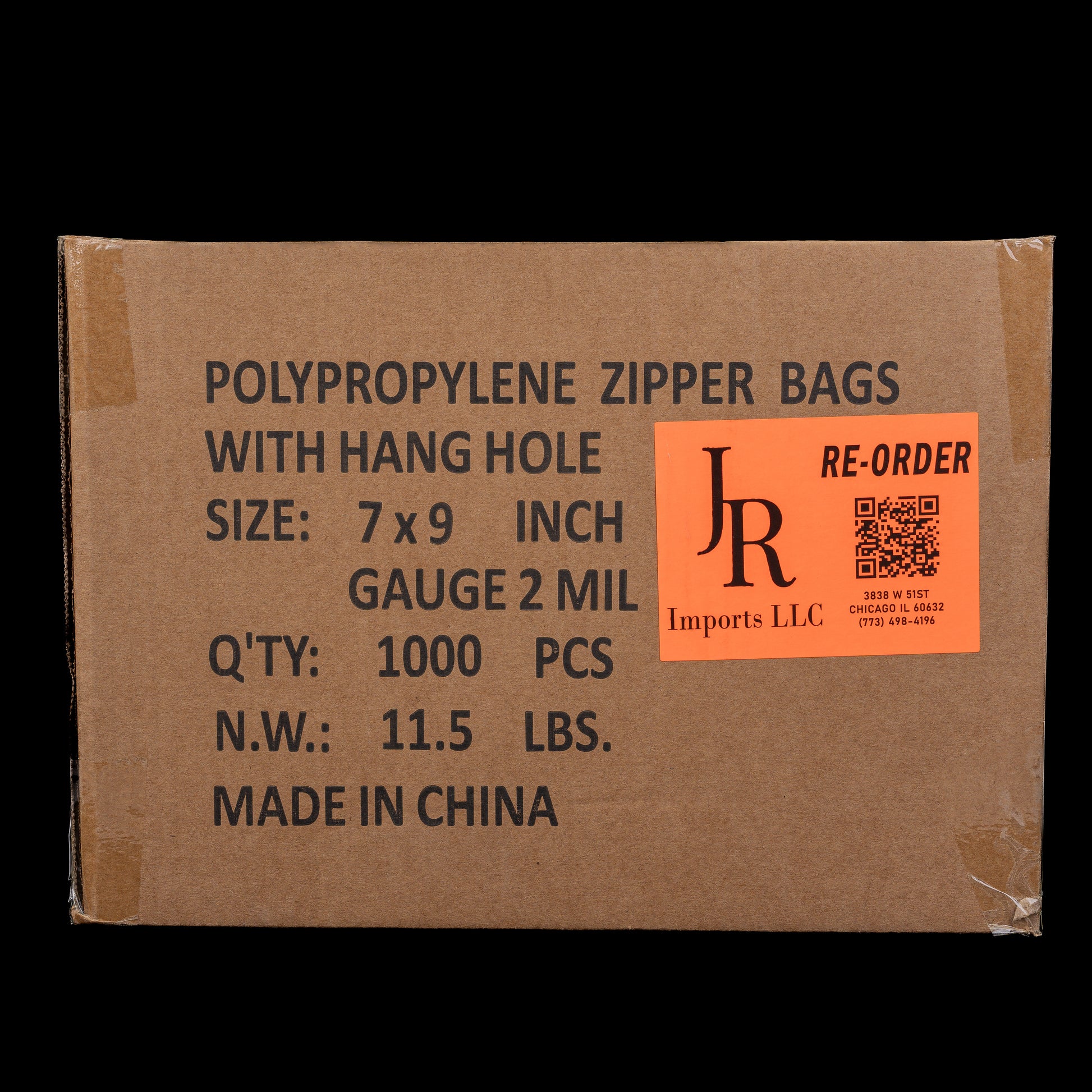 JR Imports 7x9 Polypropylene Zipper Bags with Hang Hole 2Mil / 1000pcs